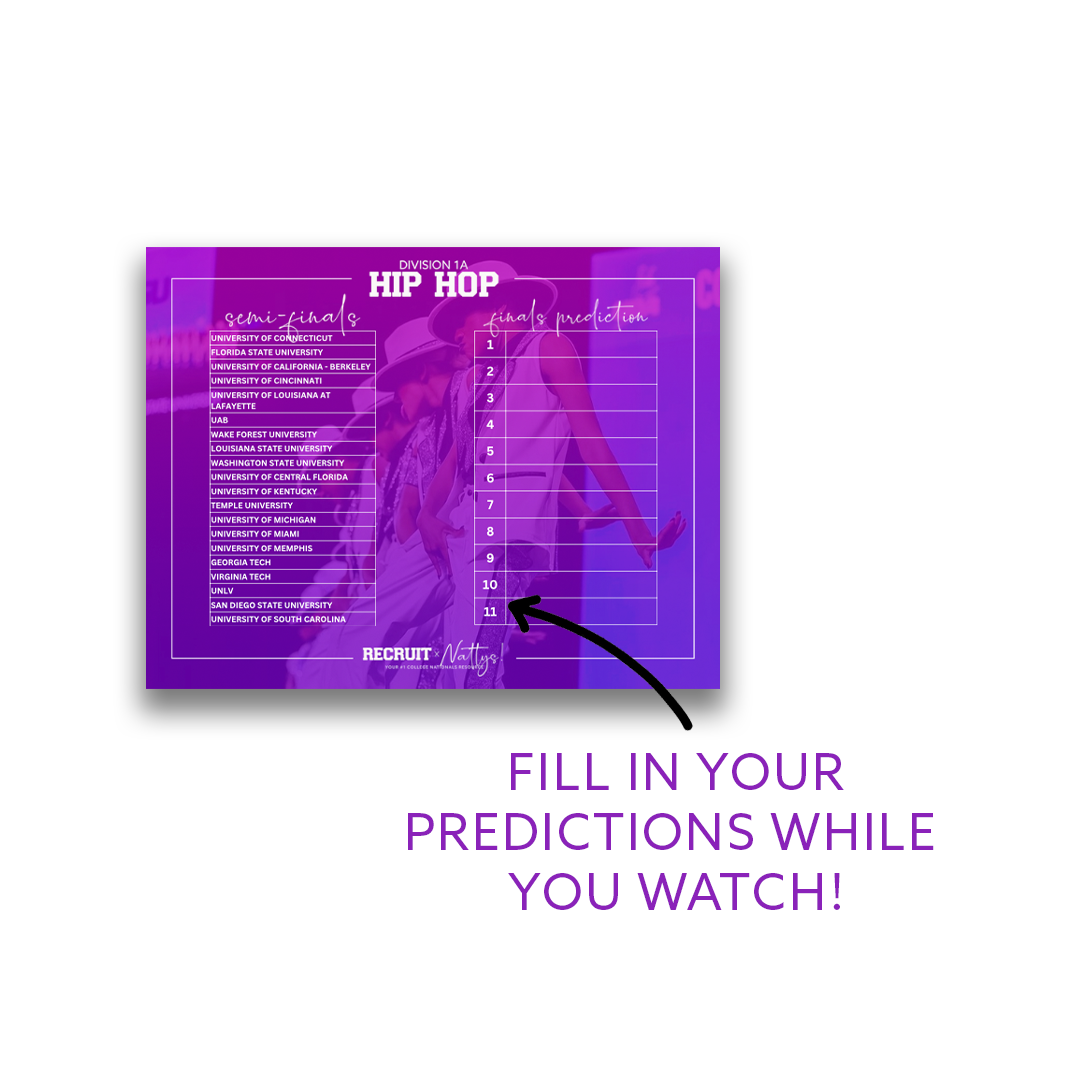 NATTYS Schedule by Division - 2025 UDA College Nationals $0.00 Add To Cart Added! Prediction Pack - 2025 UDA College Nationals $0.00 Add To Cart Added! FAN PACK! $0.00 Add To Cart Added!